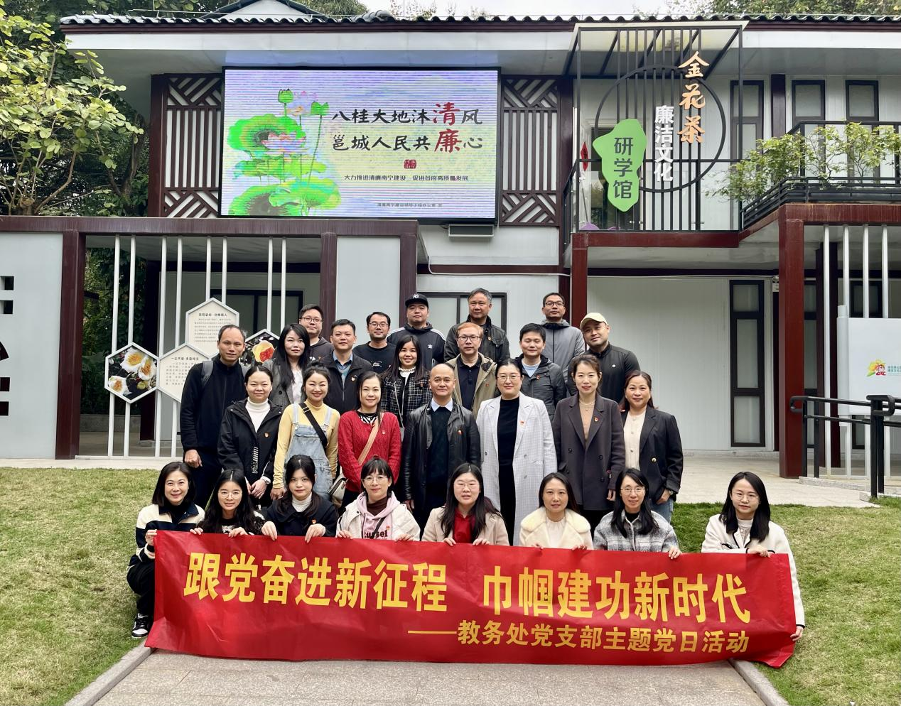 为进一步促进党支部的凝聚力,展现巾帼风彩,3月8日上午,在第114个“三八”国际劳动妇女节之际,教务处党支部联合机关三分工会教务处工会小组,组织全处人员前往南宁金花茶公园廉洁文化主题园,开展“跟党奋进新征程 巾帼建功新时代”主题党日活动。