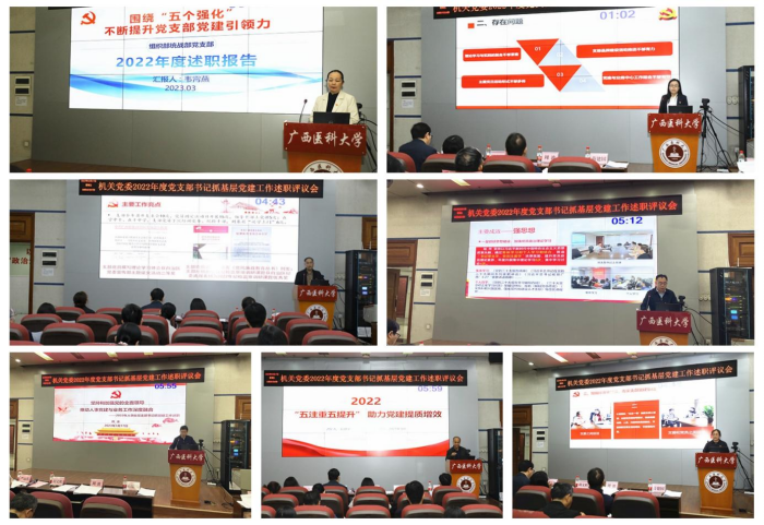 述职评议结束后,严远东书记结合传达学校党委关于进一步推进首批新时代广西高校党建工作示范高校验收工作的会议精神,进行了总结讲话。他指出,各支部在学校党委的坚强领导下,紧紧围绕新时代党的建设总要求,认真贯彻落实党中央、自治区党委、学校党委决策部署,持续加强和改进党的基层组织建设,不断提高党的建设质量,为推动党的二十大精神在医科大学落实落细提供了坚强的政治保障和组织保障。他强调,2023年是全面学习宣传贯彻党的二十大精神的起步之年,今年学校中心工作任务也艰巨繁重,越是任务艰巨繁重,我们就更要加强机关党的建设,要通过高质量党建引领学校高质量发展,推动学校“双一流”建设再上新台阶。就做好机关党委创建工作,严远东书记提出三点要求:一是我们要在学习贯彻党的二十大提出的党的建设要求中,按照创建工作要求,把握好我们机关党建工作思路;二是我们要在推动高质量党建引领高质量发展中,按照创建目标,对焦好我们机关党建的工作目标;三是提高政治站位,加大工作投入,落实好创建工作“五大工程”,推进好20项重点任务。